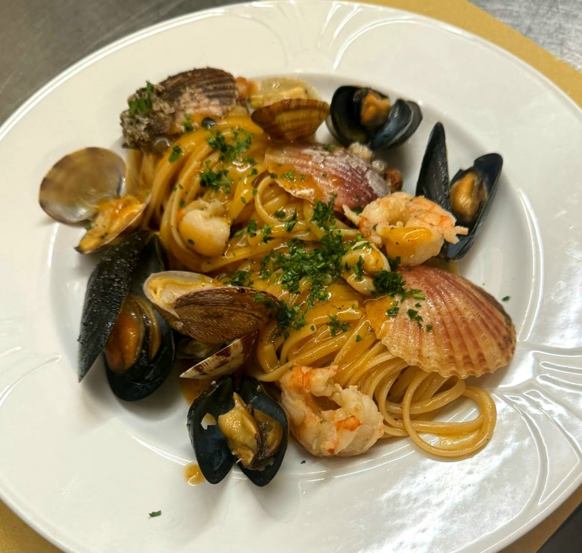 One of the standout dishes at Trattoria Alla Gioconda is the Spaghetti Allo Scoglio. This dish brings together the freshest seafood, including tender mussels, clams, and shrimp, all tossed in a savory tomato-based sauce that’s sure to leave you coming back for more. Another signature dish to try is the Spaghetti Alle Vongole, a classic Italian favorite made with succulent clams, garlic, and a hint of white wine, all served over perfectly cooked pasta. If you're looking to indulge, the Fritto Misto Del Giorno-a daily selection of lightly fried seafood-offers an irresistible mix of crispy fish and shellfish.